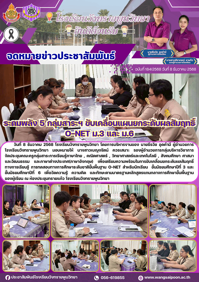 ระดมพลัง 5 กลุ่มสาระฯ ขับเคลื่อนแผนยกระดับผลสัมฤทธิ์ O-NET ม.3 และ ม.6