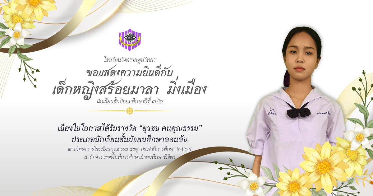 รางวัล "ยุวชนชน คนคุณธรรม" ประเภทนักเรียนชั้นมัธยมศึกษาตอนต้น