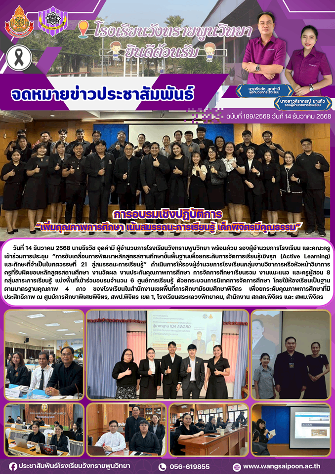 การอบรมเชิงปฏิบัติการ “เพิ่มคุณภาพการศึกษา เน้นสมรรถนะการเรียนรู้ เด็กพิจิตรมีคุณธรรม”