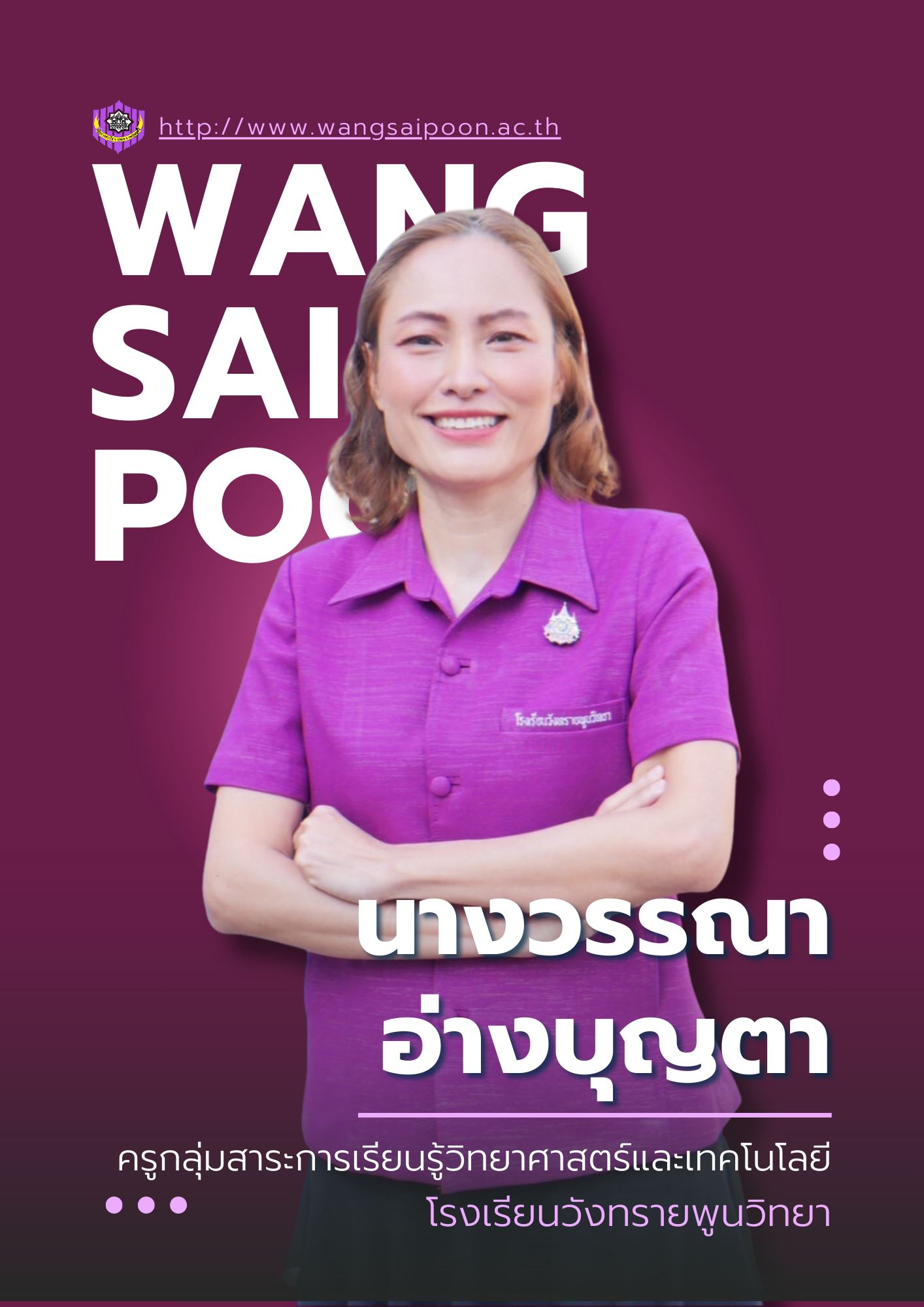 นางวรรณา อ่างบุญตา ครูชำนาญการพิเศษ หัวหน้ากลุ่มสาระการเรียนรู้วิทยาศาสตร์และเทคโนโลยี